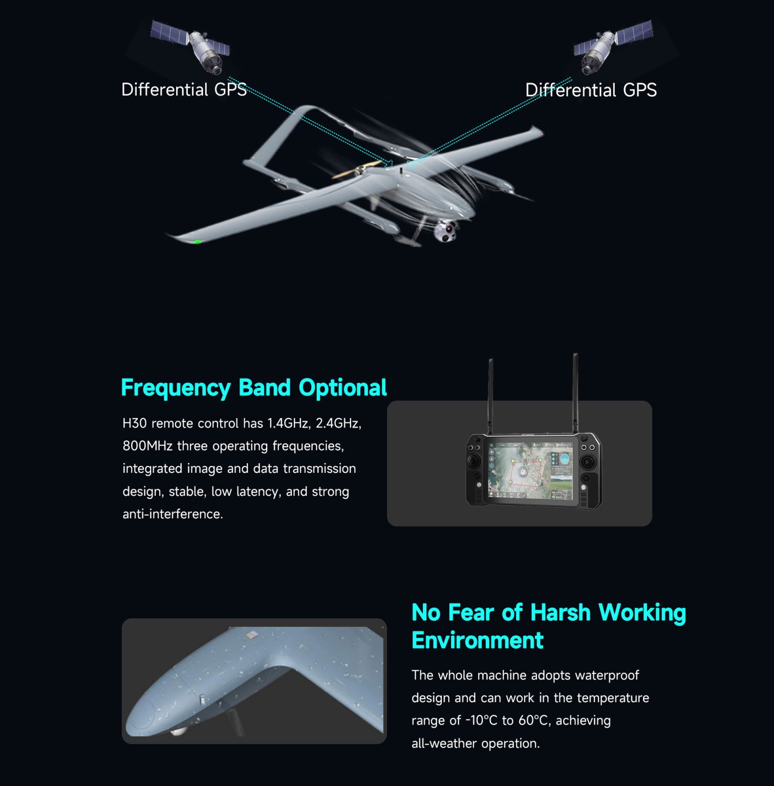 Compared with traditional fixed-wing aircraft that require calibration of the compass before flying, the SG V160H does not need to calibrate the compass before flying, thus saving a lot of time and improving work efficiency. Using the latest dual GPS differential technology, it can be protected from electromagnetic wave interference during the hanging process, greatly improving the stability of the aircraft in the air.