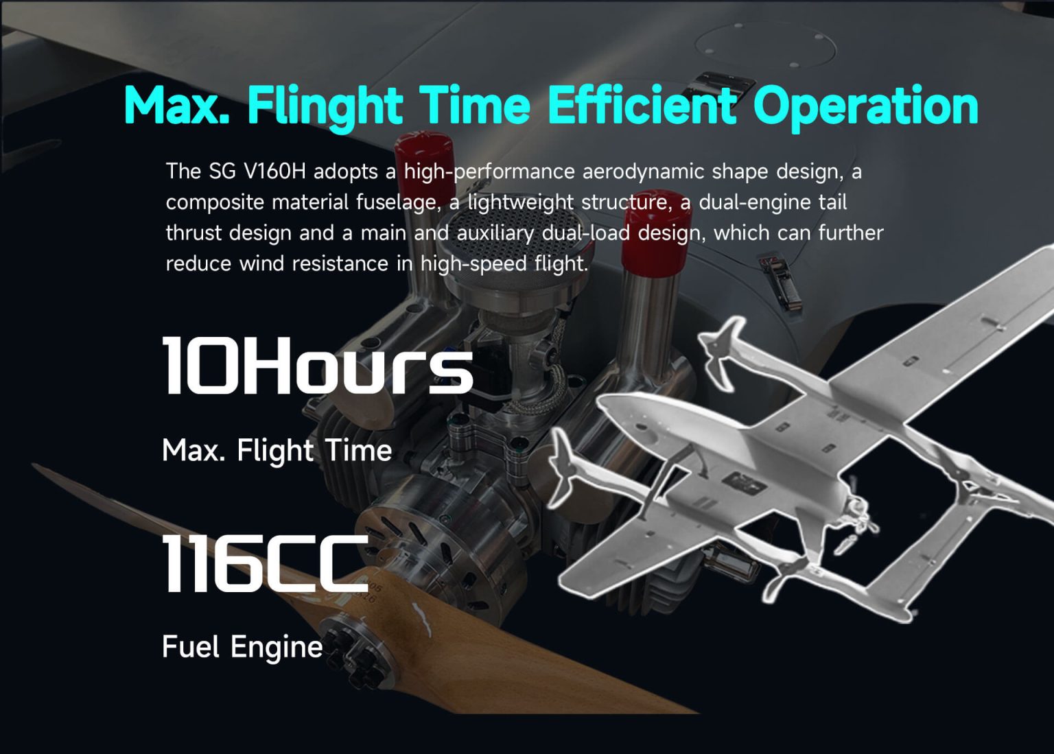 SG V160H is equipped with multiple redundant systems to provide reliable guarantee for your flight experience. It can calmly cope with complex terrain environments and truly realize the integration of air and ground to ensure efficient operations.