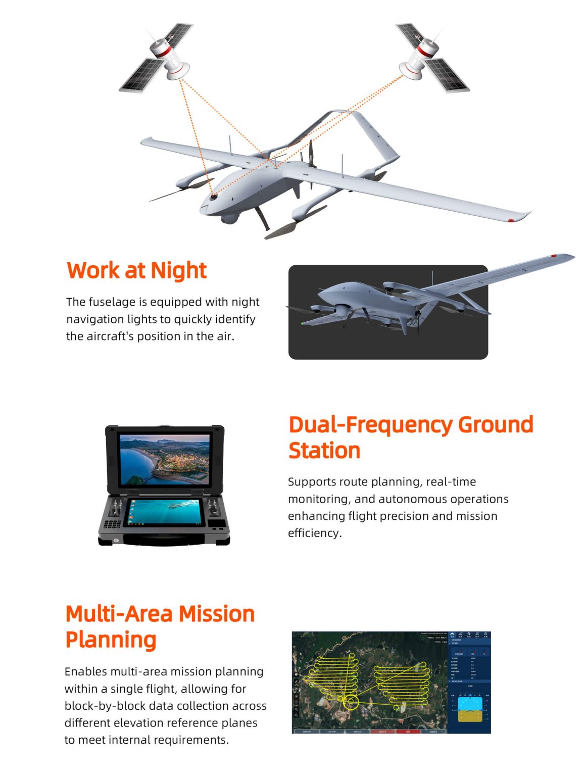 Compared with traditional fixed-wing aircraft that require calibration of the compass before flying, the SG V260H does not need to calibrate the compass before flying, thus saving a lot of time and improving work efficiency. Using the latest dual GPS differential technology, it can be protected from electromagnetic wave interference during the hanging process, greatly improving the stability of the aircraft in the air.