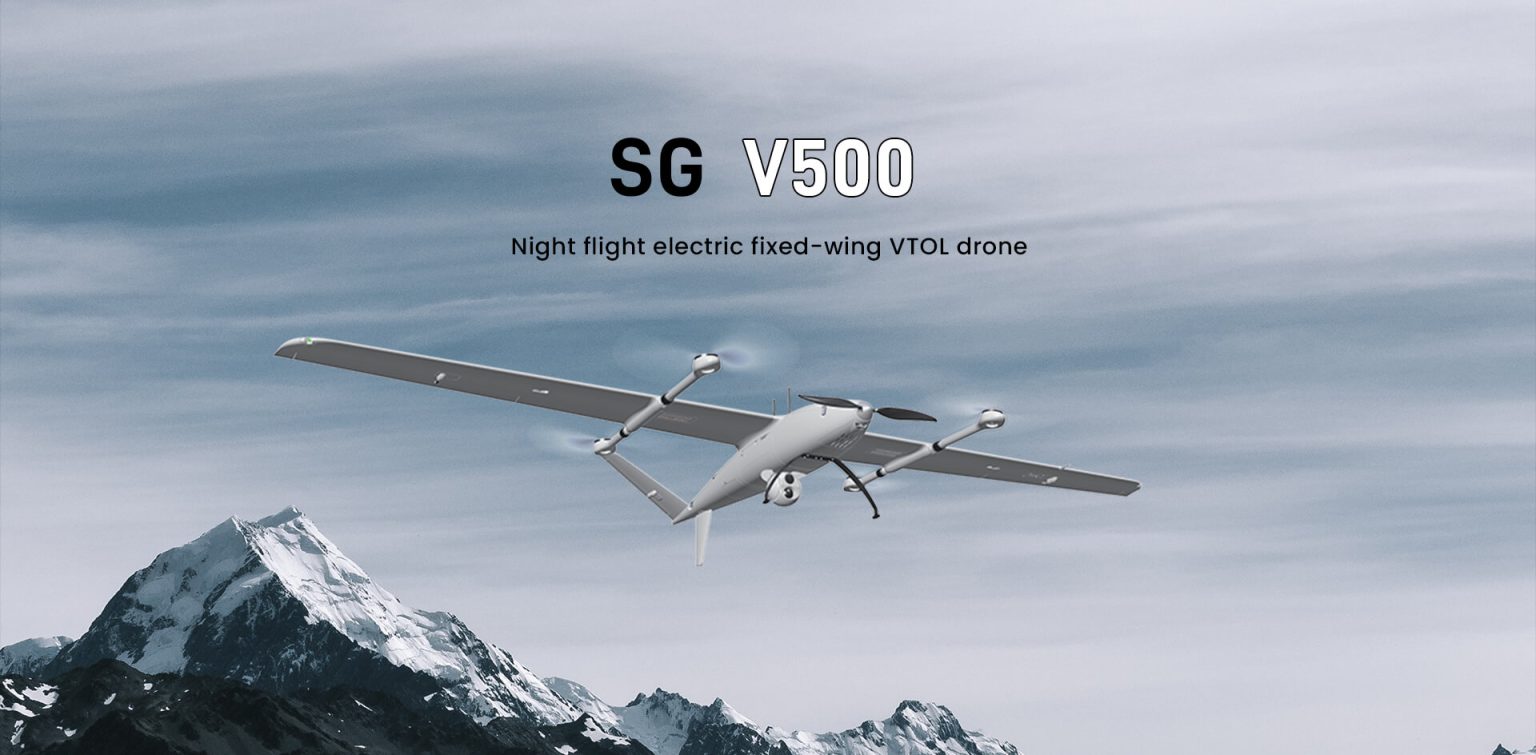 The SG V500 is a purely electric vertical takeoff and landing fixed-wing drone designed specifically for large-scale mission coverage. It features extended flight endurance, high-speed capability, stable structure, and high reliability.