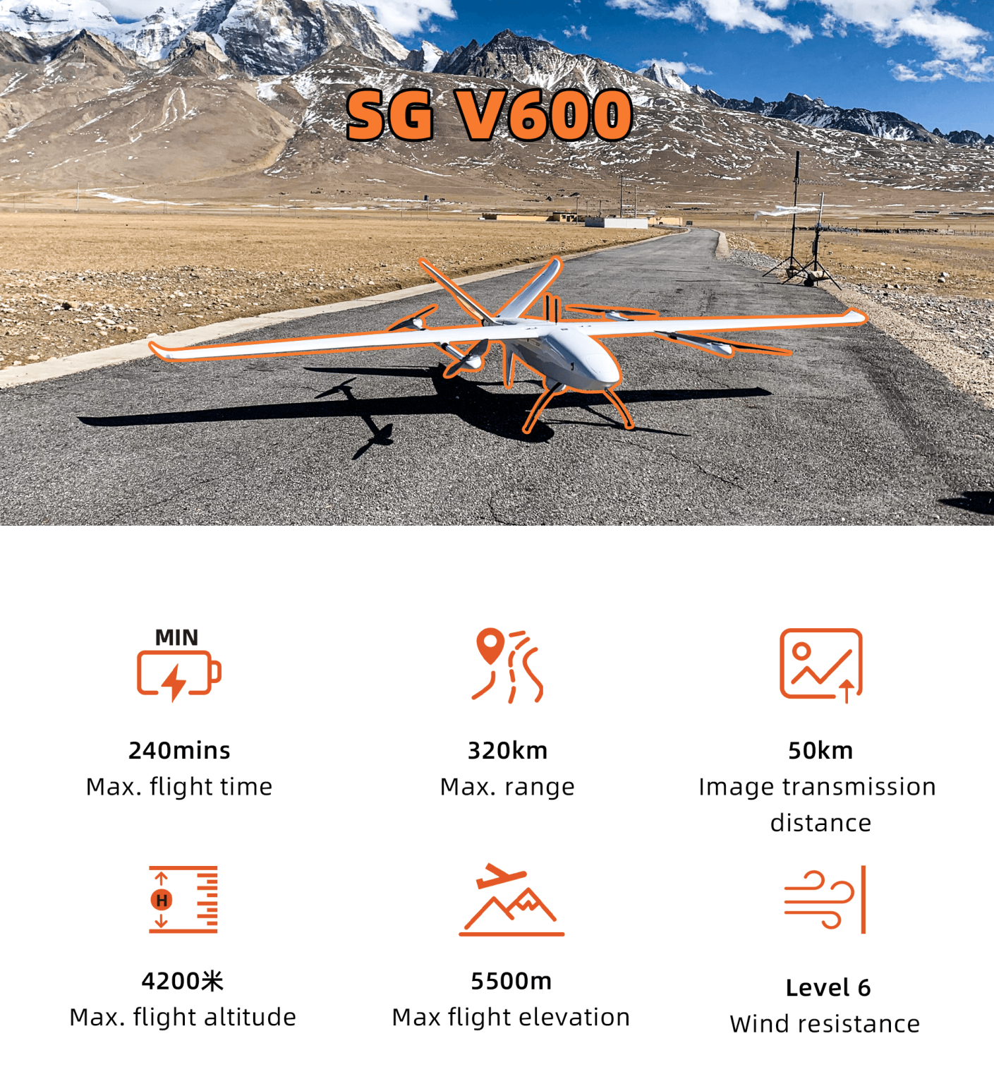 The SG V600 is equipped with a left-red and right-green navigation light design to meet the needs of night flights, enhancing safety and visibility. It efficiently completes operational tasks in applications such as inspection and tracking.